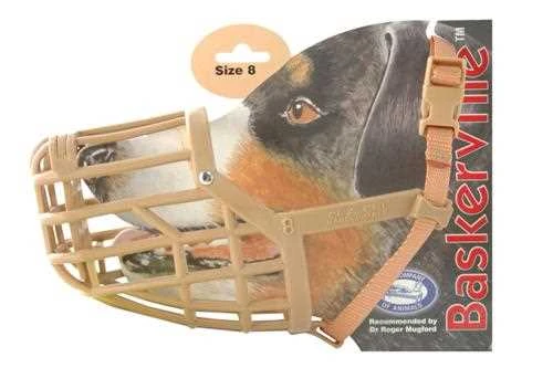 Baskerville muzzles are fully washable and can be sterilised. Do not use if damaged. Do not leave your dog muzzled without supervision.