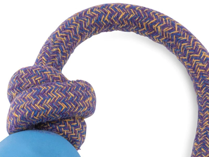 Going the distance to keep your dog leaping to the sky. A natural rubber ball on a strong and soft-to-touch recycled cotton rope. The natural rubber is super tough, and the rope makes it easy to throw; ideal for a game of fetch.