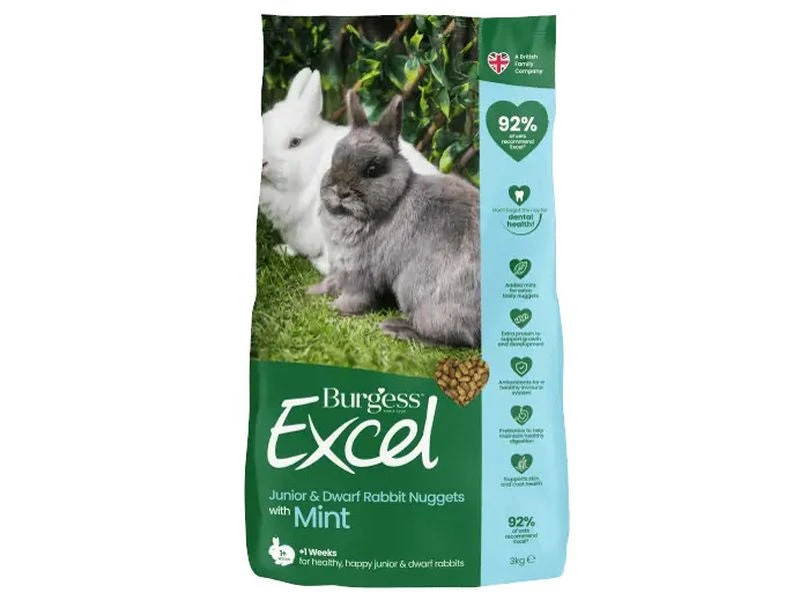 Burgess Excel Tasty Nuggets for Junior and Dwarf Rabbits is a delicious, complementary food that’s high in Beneficial Fibre, protein and rich in nutrients to help young rabbits grow. Dwarf breed rabbits will thrive on this food as they have a higher metabolism than adult and standard sized rabbits, so require a feed that is specifically targeted to their unique needs.