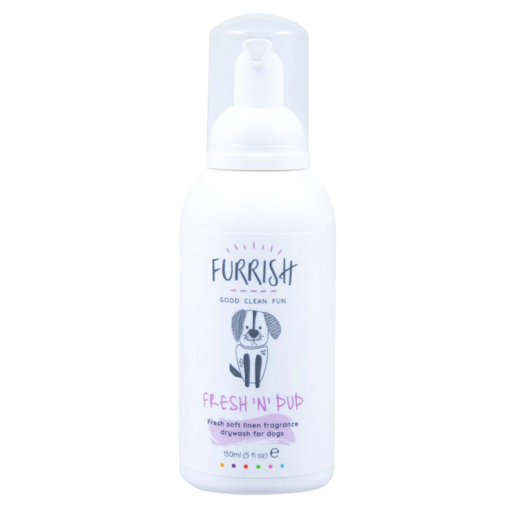 Furrish Fresh ‘n’ Pup Drywash – 150ml Want to give your Friend’s coat a refresh in a fraction of time it would take to bath them? Whether keeping them clean in between bath time or after a messy walk in the park, this gentle but effective cleanser is combined with conditioning agents to clean, soften, and condition the coat whilst removing static and preventing knots. Enriched with Avocado Oil and Aloe Vera to leave the skin and coat healthy, shiny, and cuddle ready. Suited to: Short Hair Long & Straight Shedding Curly & Wavy Sensitive Aroma: Soft Linen Directions: Shake the bottle well and apply one generous pump of product into the palm of your hand. Massage gently into the areas of the dog’s coat that need a freshen up and repeat as required. No rinse required. Ingredients: Aqua, Polysorbate 20, Alkyl Polyglucoside, Cocamidopropyl, Aloe Barbadensis Leaf Juice Powder, Persea Gratissima Avocado Oil, Hydrolyzed Vegetable Protein, Fragrance, Panthenol, Cetrimonium Chloride, DMDM Hydantoin, Citric Acid, Butylphenyl Methylpropional, Citronellol, Hexyl Cinnamal, Limonene, Linalool, Alpha-Isomethyl Ionone