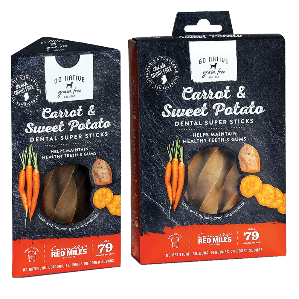 Treat your dog daily while treating their teeth with Carrot and Sweet Potato Go Native Dental Super Sticks.