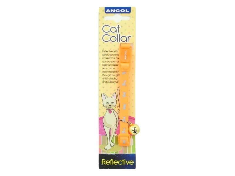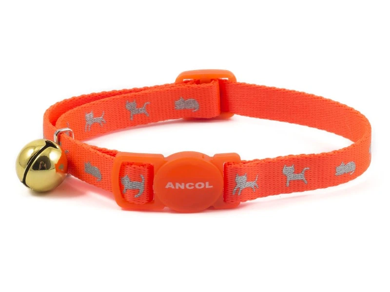 Keep track of your feline friends with the Ancol orange Hi-Vis cat collar with a reflective cat pattern to keep your cat safe in low light. All Ancol cat collars come with safety features as standard; this collar features a break-away buckle to allow your cat an easy escape if they get caught whilst climbing. All Ancol collars also feature a warning bell to help protect wildlife.