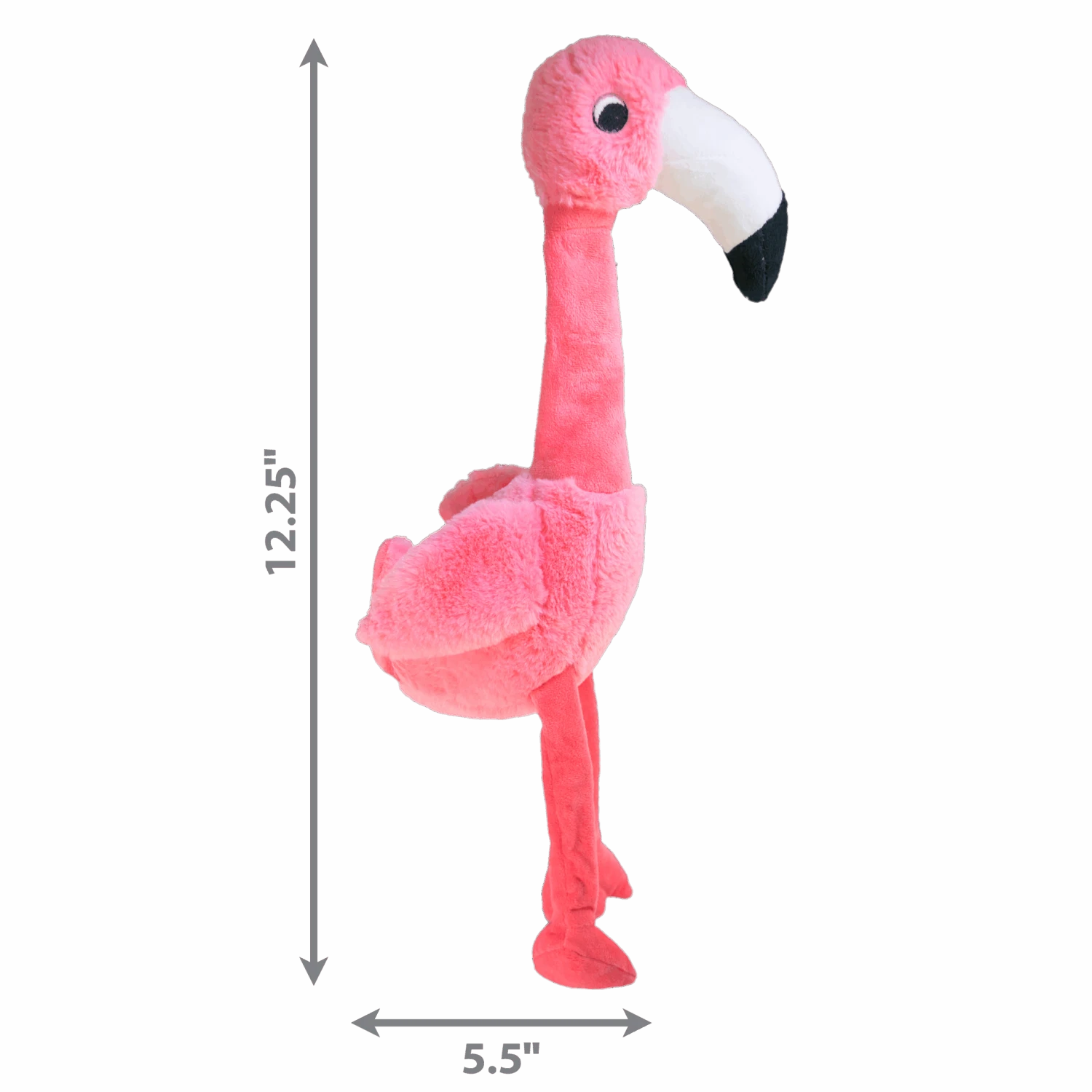 KONG Shakers Honkers Flamingo is a festive flash of pink whose internal neck features a texture that satisfies a dog’s natural chewing instincts while the long floppy legs spark shaking and tugging playtime fun. The KONG Shakers Honkers Flamingo’s low tone squawk and the reinforced plush design keeps dogs tickled pink and playing longer.