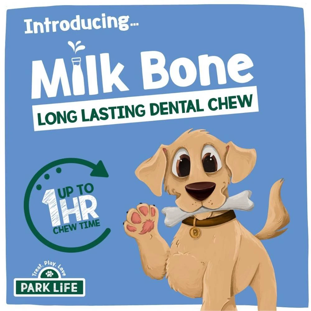 Please note that these milk bones are a complementary treat for adult dogs and are not intended as a meal replacement. Limit to 1 milk bone per day and always supervise your dog when eating chews and always ensure fresh water is avaialble for your pet.