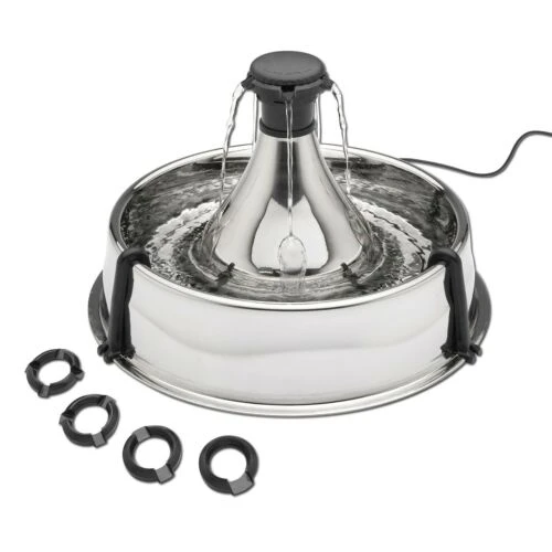 This pet fountain comes with 5 different stream attachments, so you can create 5 different free-falling streams for your pets to drink from. You can twist the top to change the strength of the free-falling streams so shy pets will feel comfortable drinking from the fountain too.