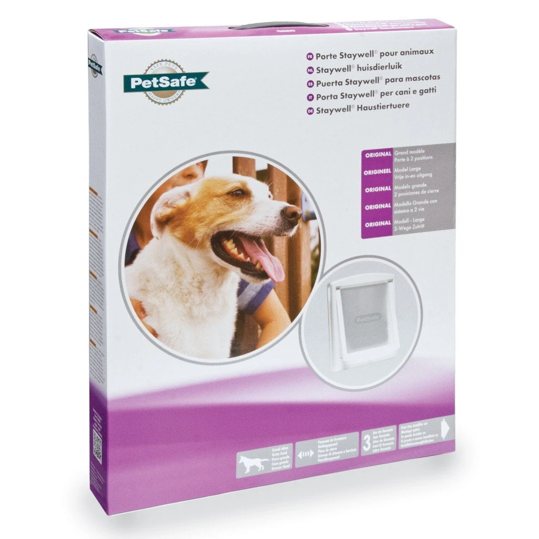 Your dog or cat can let himself out with the Staywell ® Original 2-Way Pet Door. Set it to ‘Unlocked’ for more freedom or ‘Locked’ when you don’t want your pet to use the door. Available in white, brown and grey.