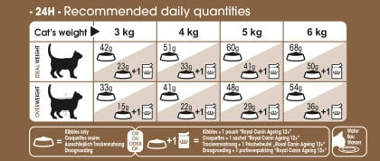 - Reduced stool odour : The natural ingredients in Royal Canin Ageing +12 cat food minimise the amount of undigested food and encourages gut flora. Nasty stool odours are reduced naturally