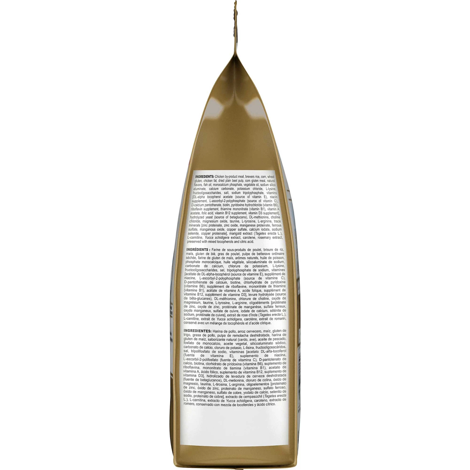 Dehydrated poultry protein, rice, maize, animal fats, vegetable protein isolate*, beet pulp, maize flour, maize gluten,