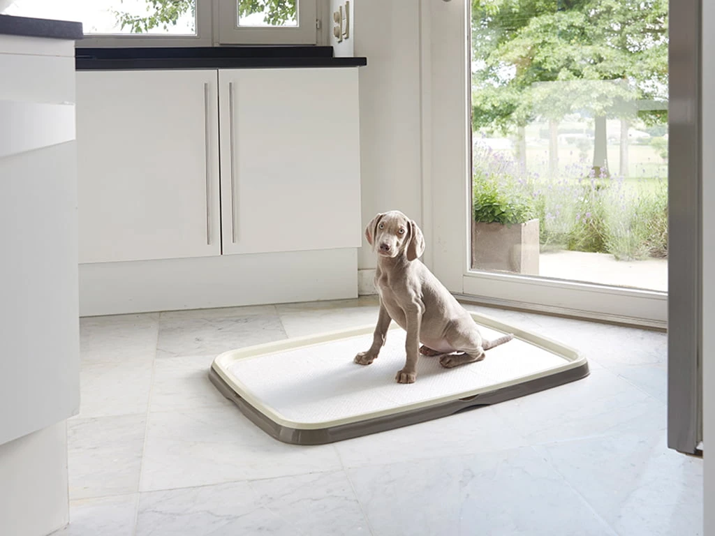 The kit contains 1 tray and 7 Puppy Trainer pads. The tray is fitted with an easy to remove rim that ensures the pad is properly fixed and not loose on the floor. The tray is fitted with anti-slip feet which makes it ideal for use on a tiled or wooden floor.