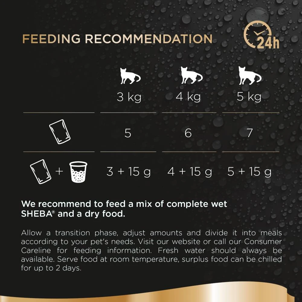 A wonderful way to keep your cat interested time after time is with the super tasty Sheba Fish Selection in Jelly Fresh Cat Food. Specially produced with delicately sliced pieces served in divine jelly, it provides a fresh-tasting fish sensation every time!
