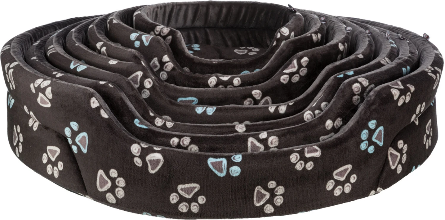 The Trixie Jimmy dog bed is a soft oval plush bed available in 4 sizes. It has a reversible cushion and non-slip base.