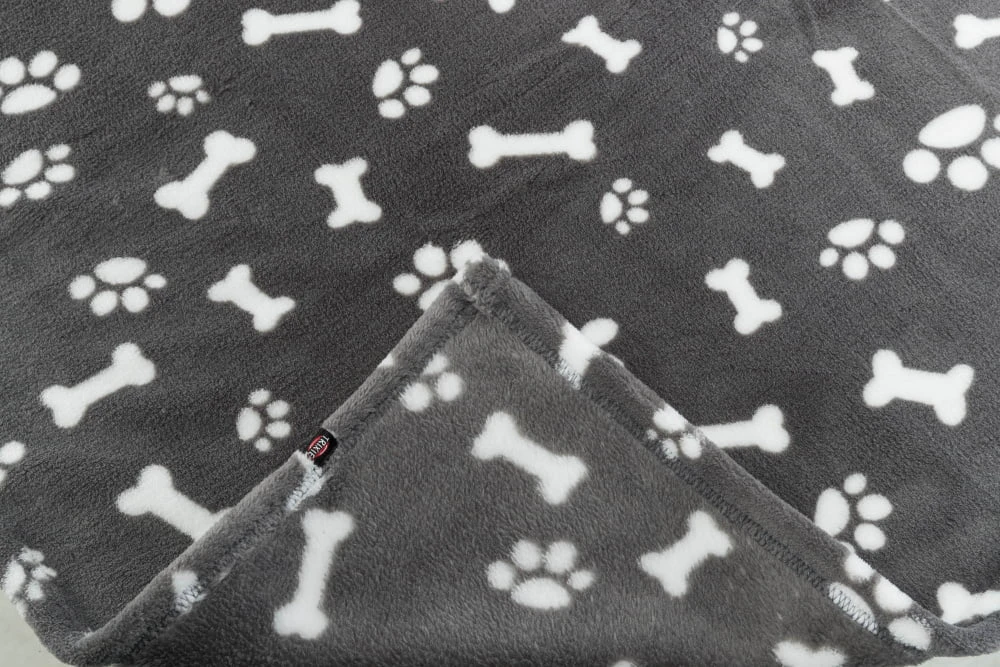 The Kenny grey plush blanket for dogs is a beautiful, comfortable blanket made from super soft plush material with a bone and paw print pattern. You can use this dog blanket to place in their bed, on the floor or to protect your furniture or car.