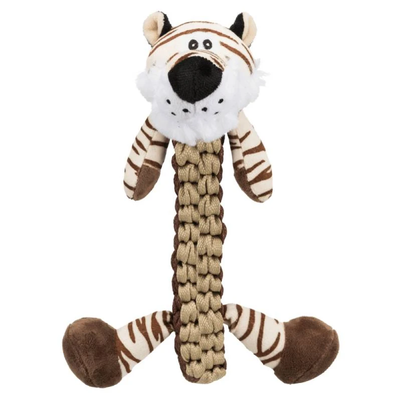 The Trixie Tiger Dog Plush Toy will keep your dog entertained for hours, it is made with a lovely plush (polyester). It has a fairly robust plaited body with sound to keep your pet engaged.