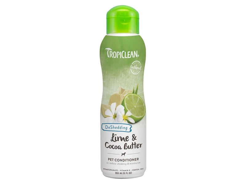 TropiClean Lime & Cocoa Butter with omegas 3 & 6 nourishes their skin to effectively reduce shedding and eliminate tangles. Pomegranate and cocoa butter replenish your pet’s natural moisture balance, to release the undercoat during the bath. Inspired by the tropics, his (or her) coat will be smooth and clean, begging for a belly rub.