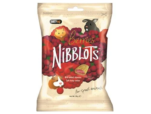 VetIQ Berry Nibblots small pet treats have been formulated to maintain your small animal’s wellbeing. They comprise of a nice crispy cereal shell with a soft delicious fruity centre which contains a source of Omega 3 and vitamins to help promote a healthy skin and coat and can help to create bonding between pet and owner.