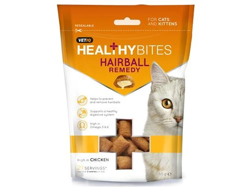 Those pesky hairballs can be prevented by frequent grooming and the routine taking of Healthy Bites Hairball Remedy as directed. When cats and kittens lick their fur, that fur may be ingested, which then accumulates in their stomach and forms what is known as a hairball. Healthy Bites Hairball Remedy helps to assist passage of swallowed fur through the gut to avoid the formation of hairballs. Healthy Bites Hairball Remedy for cats has been formulated by animal nutritionists and are approved by veterinarians, they have no artificial colours, flavours or preservatives and are wheat free.